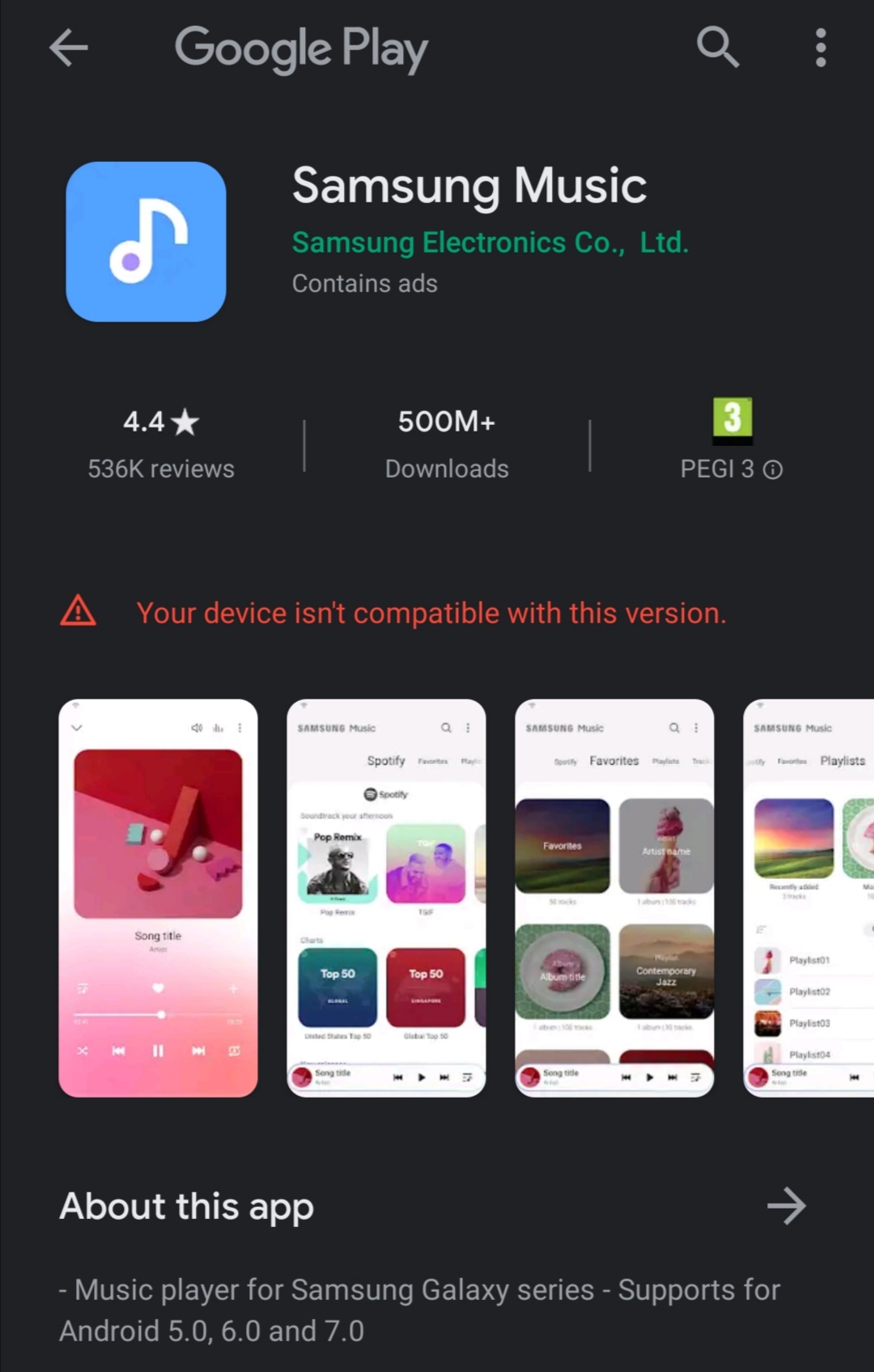 Instantly start radio stations based on songs, artists, or albums, or.. Sometimes newer versions of apps may not work with your device due to system incompatibilities. Until the app developer has fixed the problem, try using an older version of the app. Sometimes newer versions of apps may not work with your device due to system incompatibilities. Sometimes newer versions of apps may not work with your device due to system incompatibilities.